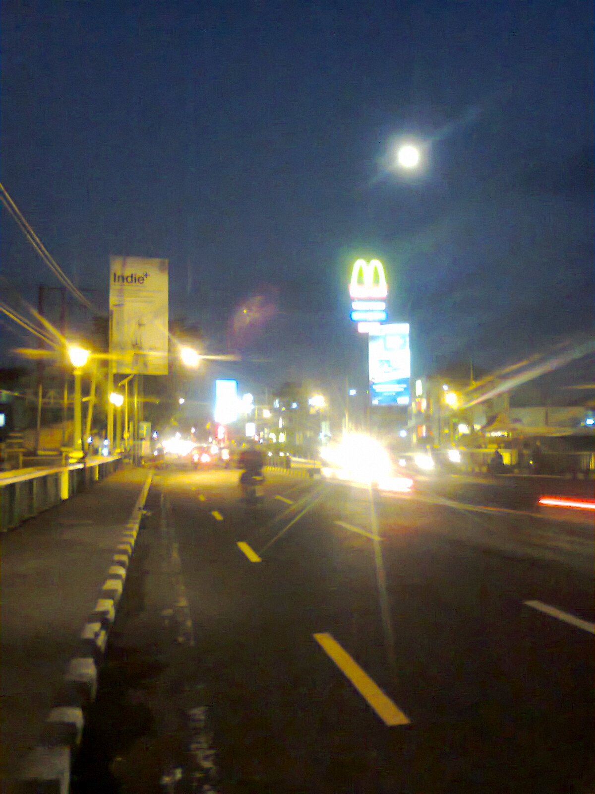 Diatas Jembatan Gondolayu aku7 sejenak berhenti mengabadikan keindahan malam berbulan terang. Tak bisa terulang. Berada tak jauh dari MC Donald terlihat seperti bola lampu yang berpijar beribu-ribu watt.....menerangi dunia malam itu.